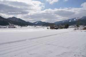 > 石見街道(広島県山県郡北広島町荒神原)の雪景色